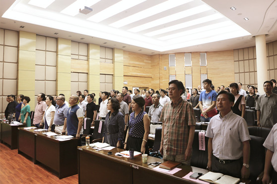 奏响庄严的国歌,与会人员全体起立,共唱国歌