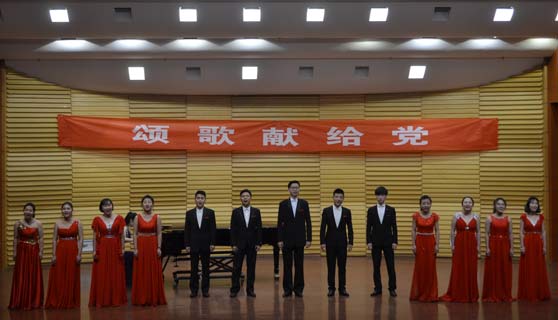 为迎接中国共产党成立95周年,6 月16日晚,由音乐教育学院主办的庆祝中国共产党成立95周年“颂歌献给党”主题音乐会在文东校区音乐厅举行。