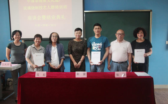 6月13日上午,山东艺术学院2016年非物质文化遗产琉璃烧制技艺传承人群培训班座谈会暨结业典礼在长清校区艺管楼A309工作室举行。艺术管理学院、设计学院领导,非遗培训班相关老师和全体学员参加了结业典礼。