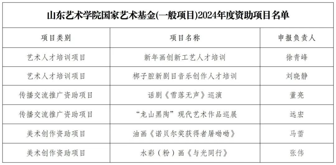 获批国家社科基金哲学社会科学领军人才项目1项,国家社科基金一般项目2项,国家社科基金艺术学项目2项,教育部第九届高校科研青年成果奖1项,实现了国家社科基金项目(非艺术学类)、国家级科研成果奖的新突破。获批国家艺术基金项目6项,46件作品入选第十四届全国美展,获得全国第七届大学生艺术展演一等奖3项,全国青少年民族器乐教育成果展示最高奖3项,彰显了学校艺术实践的实力和水平。