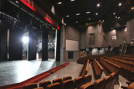 步入圆形剧场,炫彩夺目的舞台、宽敞舒适的座椅、大型的LED电子显示屏等等,从整体到细节,圆形剧场带给人的第一感觉就是专业化和现代化。据剧场工作人员介绍,剧场总面积780余平方米,舞台长15米,宽12米,可同时容纳201人观看演出。音响系统采用了美国DIGICO调音台、法国LA扩声系统及德国森海塞尔麦克,此套系统目前在国内居于领先水平,《中国好声音》《我是歌手》等电视节目均采用此系统;调光台使用的是世界主流的英国TIGER TOUCH 2代;舞台机械采用变频系统,起到了缓升缓降从而保护灯光和工作人员人身安全的作用;另外剧场设有80盏LED四色聚光灯、60盏成像灯、48盏LED天地排灯及16台电脑图案切片灯;电影系统与市面电影院为同一系统,可以与院线进行直接对接,此前校友郭婷婷出品的电影《半熟少女》点映会就在此举行。这些高端的设备保障了剧场在舞台布景、灯光、声效、视角等专业化方面都有较高水平,可完成不同需求的演出任务。
