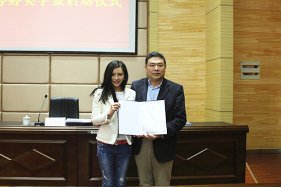 最后,郭婷婷和王力克进行了奖学金捐赠支票的交接。