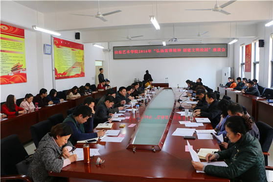3月4日上午,我校2016年“弘扬雷锋精神 创建文明校园”座谈会在长清校区办公楼二楼会议室召开,学校党委副书记王力克,受表彰的先进集体、先进个人、相关职能部门负责人、各二级学院党总支相关负责人及学生代表50余人参加。座谈会由团委负责人主持。