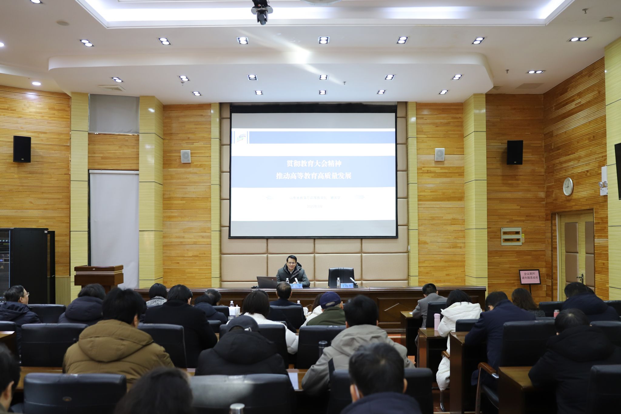 2月13日,学校在长清校区举行2025年春季中层领导干部培训班。山东省委教育工委(教育厅)高等教育处处长曾宪文、上海交通大学特聘教授夏燕靖应邀为培训班作专题报告。学校党政班子成员、全体中层干部参加专题报告会。