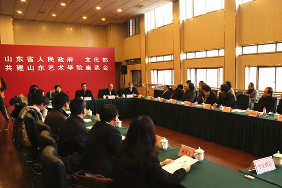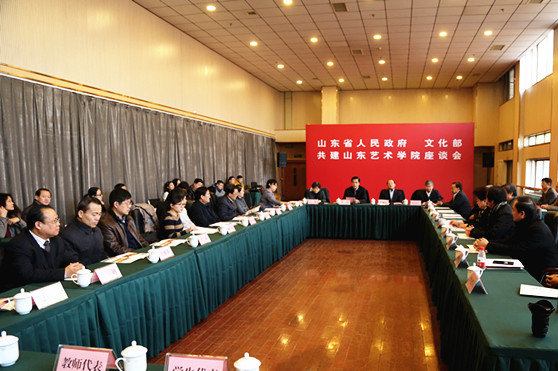 座谈会开始时,山东艺术学院党委书记李宗伟代表学校及全体师生对省委、省政府、文化部以及省教育厅、文化厅、发改委、人社厅和文化部文化科技司等部门对省部共建山东艺术学院的关心和推动表示诚挚感谢,对社会各界长期支持学校表示诚挚感谢。他简要汇报了山东艺术学院办学历史和当前学校工作。他表示,学校将以此为契机,不负众望,坚持立德树人,致力内涵发展,努力把学校建成稳具实力、充满活力、富有魅力的现代化、高水平艺术大学,持续为山东和全国文化艺术发展繁荣和社会的文明进步,做出新的更大的贡献!