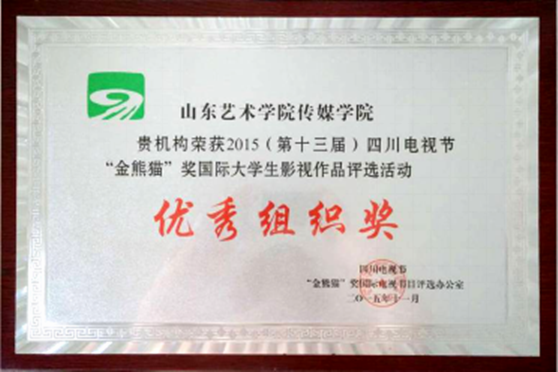 近日,由国家广电总局和四川省人民政府联合主办的四川电视节 “金熊猫”奖国际大学生影视作品评选颁奖典礼落下帷幕。传媒学院数字媒体系师生创作的六部作品获得入围奖。其中《最美的回忆》、《小城故事》、《逆风飞翔》、《老友理发店》获剧情片入围奖;《B小调第二交响曲》获动画片入围奖;《永不消退的光芒》获纪录片入围奖。山东艺术学院传媒学院获得“优秀组织奖”。