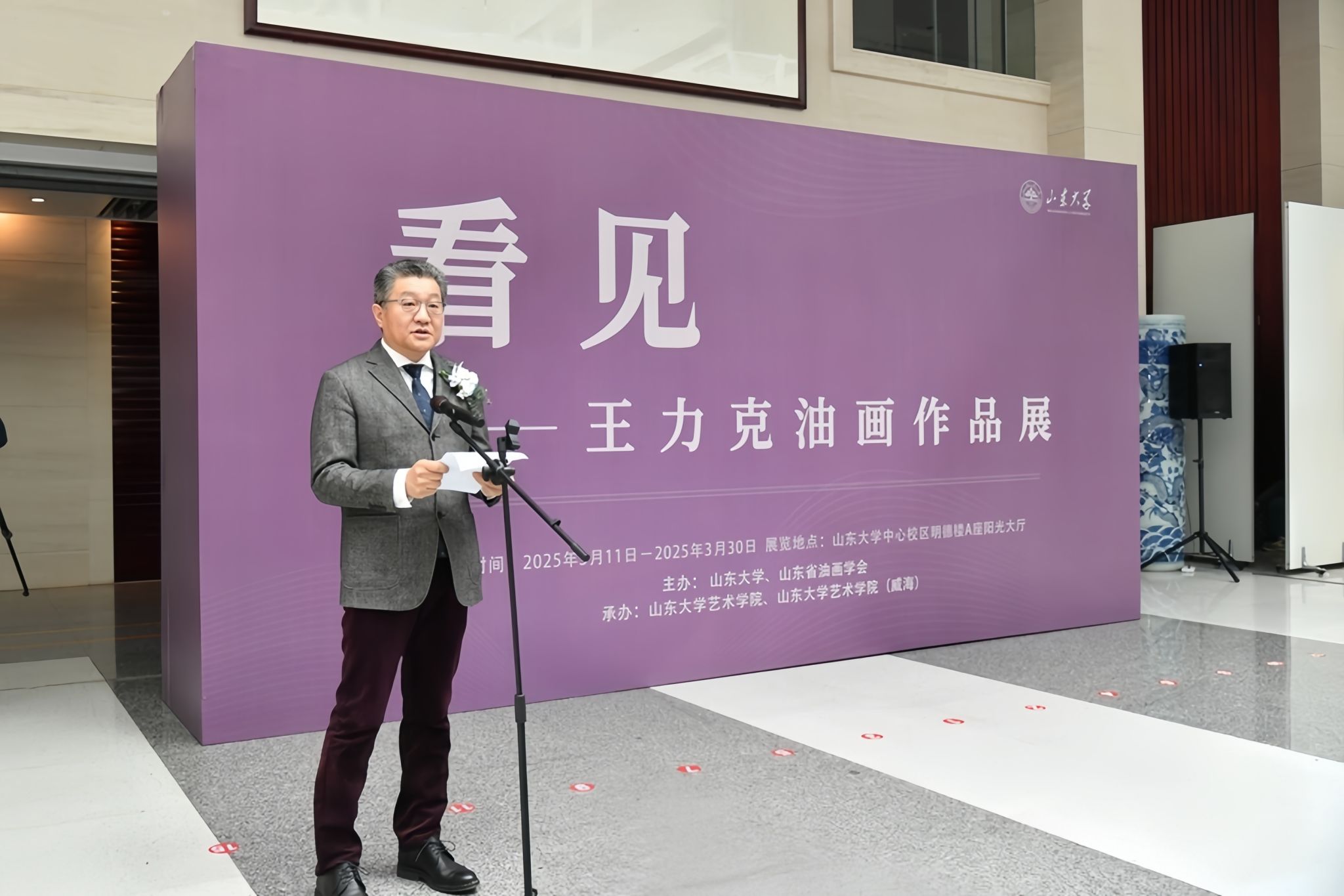 3月11日,“看见——王力克油画作品展”在山东大学中心校区开幕,山东艺术学院院长、省文联主席、省美协主席徐青峰出席开幕式并致辞。