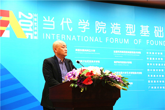 宋承祥在致辞中表示,山东艺术学院是山东省唯一一所综合性高等艺术学府,多年以来学校形成了优良的办学传统和深厚的文化积淀,一直以来在山东省艺术教育和艺术人才培养中发挥着重要作用。山东艺术学院美术学科从建校以来就在丰厚齐鲁文化的滋养下,经过几代人的辛勤耕耘,培育了大批的艺术人才,特别是在上级主管部门的领导和支持下,明确发展定位,不断改进人才培养观念,更新教育理念,办学实力不断增强。在保持传统优势的基础上,为顺应时代变革、谋求新的发展,进一步提升美术专业办学水平,此次论坛就显得非常必要和及时。相信此次论坛的成功举办,必将对美术学科基础教学产生深远影响。