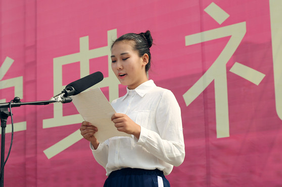 教师代表邵巍巍、新生代表郝倩倩分别在开学典礼上发言。