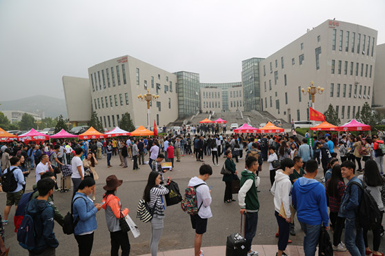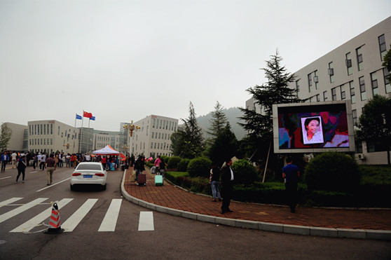 一大早家长和新生们便赶来长清校区了,校门口大彩屏正在播放学校宣传片,一派迎新氛围