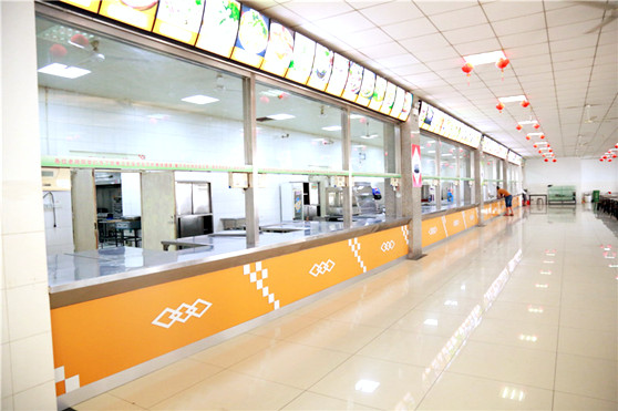其中长清校区食堂把餐厅的电视机更换为清晰度更高的平板电视,并对餐厅的照明灯光进行了更换,改造了备餐间,售饭窗口增加了灯箱、菜价牌以及玻璃罩,不仅美观大方,同学们选购饭菜时更加卫生。干净的地砖,崭新的橱窗,明亮的灯光,菜品看上去更加光鲜明亮,让人垂涎欲滴,就餐环境也更加舒适。对操作间走廊的破损瓷砖全部更换,重新粉刷了内外墙壁,售饭窗口安装了隐形帘,售饭前,把隐形帘收起,售饭后把隐形帘落下,这样可以阻止苍蝇等飞虫飞进售饭区及加工区。“明厨亮灶”,厨师的工作环境更加干净卫生,在食堂吃饭更加让人放心了。同时还引进了一些有特色的饭菜品种,同学们的就餐选择变得丰富多样了。