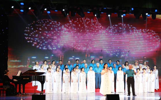 演出中,山艺由42名离退休干部组成的老年合唱团演唱了合唱歌曲《微山湖畅想》。老干部们精神饱满,镇定自若,情感细腻,直击人心,表达了对祖国的无限热爱与感恩之情。郭娟和皇甫大华演唱的歌曲《我和我的祖国》,采用抒情和激情相结合的笔调,将优美动人的旋律与朴实真挚的歌词巧妙结合起来,表达了人们对伟大祖国的衷心依恋和真诚歌颂。演出由曹克恩、李荣声担任钢琴和琵琶独奏。精彩的演出赢得台下观众和评委的喝彩和肯定,表现了山艺老干部良好的精神风貌和积极向上的生活态度。