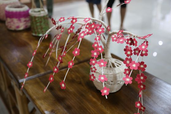学员表演剪纸及草柳编