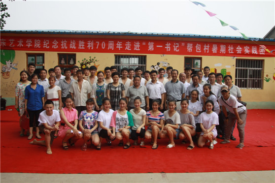 为响应共青团中央关于开展大学生暑期“三下乡”社会实践的号召,组织引导青年学生在深入社会、了解国情、接受锻炼的过程中培育和践行社会主义核心价值观,以“艺术下乡、文化惠民”的实际行动支持配合省派驻村“第一书记”抓党建、促脱贫,山东艺术学院团委、艺术实践与创作处、舞蹈学院联合组织了纪念抗日战争胜利70周年赴“第一书记”帮包村暨“走进舞蹈”系列行公益展演。学校党委组织部负责人、舞蹈学院党总支负责人、校团委、艺术实践与创作处相关负责人、三位驻村第一书记及数百名帮包村群众观看了演出。