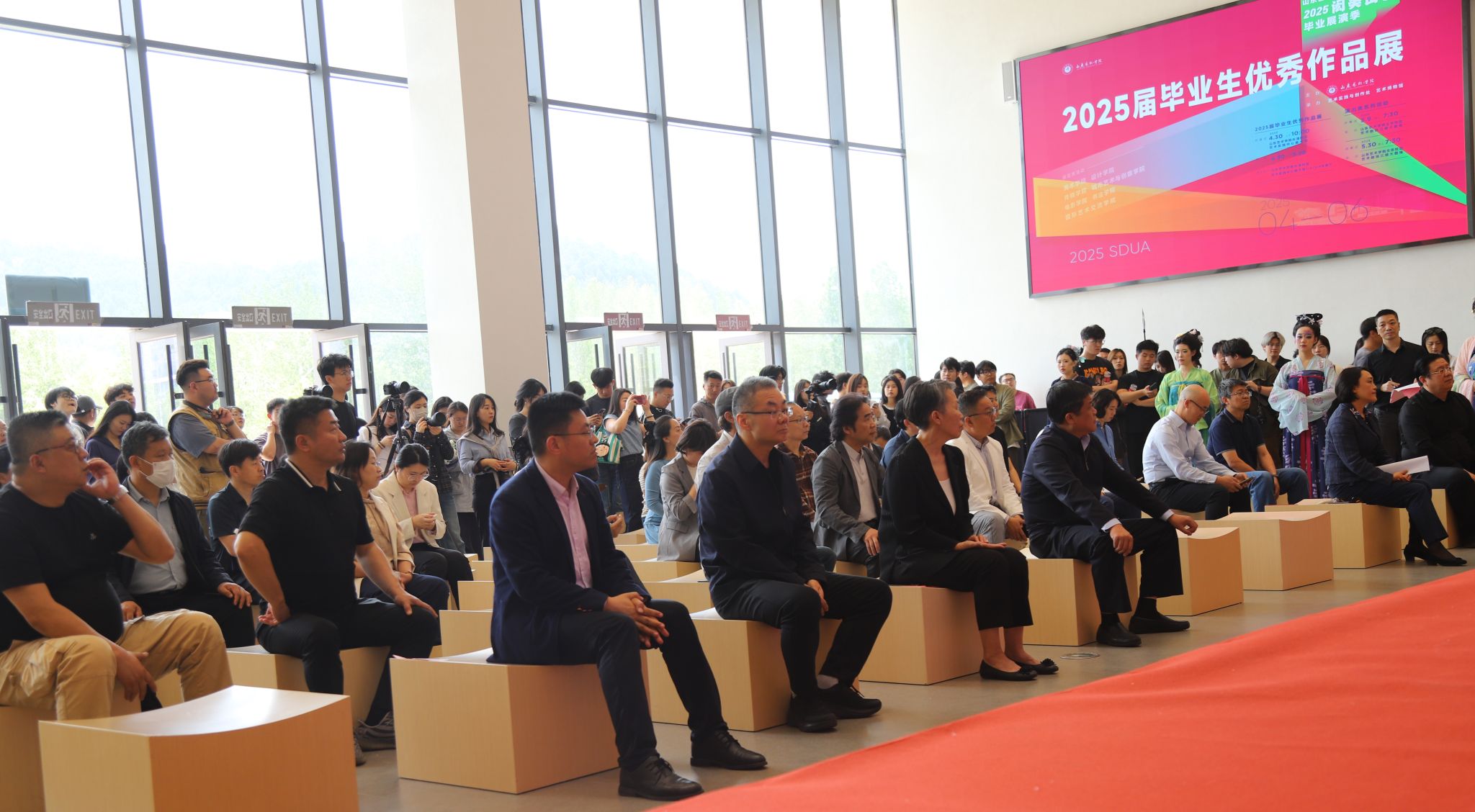 4月30日,“闳美山艺”毕业展演季2025届毕业生优秀作品展开幕式在长清校区山艺美术馆举行。党委委员、副院长荆雷、苏茂兴,党委委员、纪委书记 、省监委驻学校监察专员周立志,党委委员、宣传部部长孔宪坤出席开幕式。学校党办院办、发展规划处、教务处、艺术实践与创作处、科研处、艺术博物馆、美术学院、设计学院、传媒学院、城市艺术与创意学院、电影学院、书法学院、国际艺术交流学院有关负责人和师生代表300余人参加开幕式。活动由山东艺术学院主办,艺术实践与创作处、艺术博物馆承办。