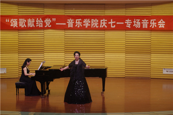 6月30日晚,艺术剧场一楼音乐厅座无虚席,掌声雷动、群情激昂,音乐学院党总支为落实学校党委党风廉政建设和“三严三实”工作要求,由各党支部师生积极参与,精心准备了一场名为“颂歌献给党”——庆七·一专场音乐会,演职人员以高水准的艺术演绎和饱满的创作热情向伟大的中国共产党致以最诚挚的祝福!学校纪委书记兰绍彤,相关职能部门负责人观看了演出。