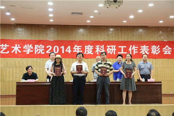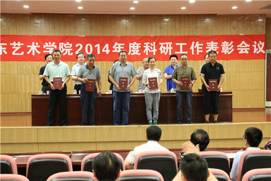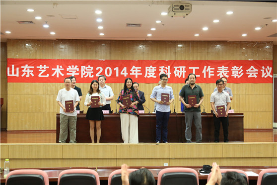 刘大力宣读了《山东艺术学院关于2014年度科研奖励和表彰工作的通报》,共有49名教师获得科研奖励,奖金总额89.47万元。大会对2014年度教师高端科研业绩成果突出的教师进行了表彰,评选出一等奖4名,二等奖9名,三等奖11名。校领导向获奖教师代表颁发了荣誉证书。