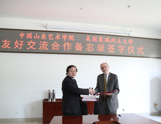 5月5日上午,美国莫瑞州立大学副校长唐恩.罗伯逊博士、国际研究学院院长邹光明博士一行访问山东艺术学院,参加山东艺术学院与美国莫瑞州立大学友好交流合作备忘录签字仪式。山东艺术学院院长张志民会见了唐恩.罗伯逊一行。签字仪式在山东艺术学院长清校区二楼会议室举行,山东艺术学院副院长刘大力出席并主持签字仪式。