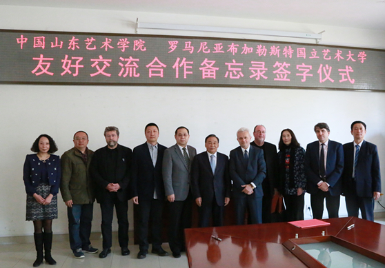 4月15日,罗马尼亚布加勒斯特国立艺术大学院长凯特琳·巴列斯库教授、副院长尤金·古斯提副教授、设计学院院长狄努·丹姆布列维什一行访问山东艺术学院,参加山东艺术学院与罗马尼亚布加勒斯特国立艺术大学友好交流合作备忘录签字仪式。签字仪式在山东艺术学院长清校区办公楼二楼会议室举行,山东艺术学院党委书记李宗伟出席并主持签字仪式。