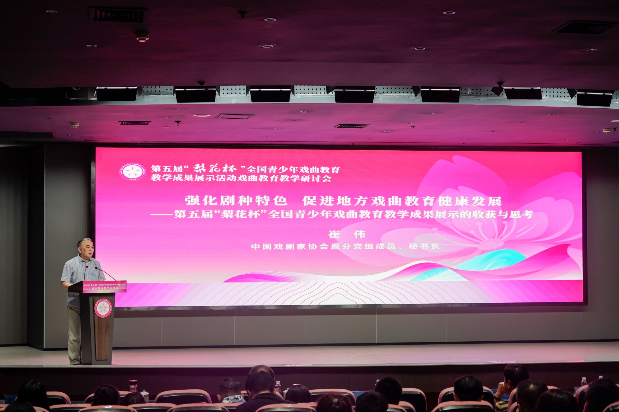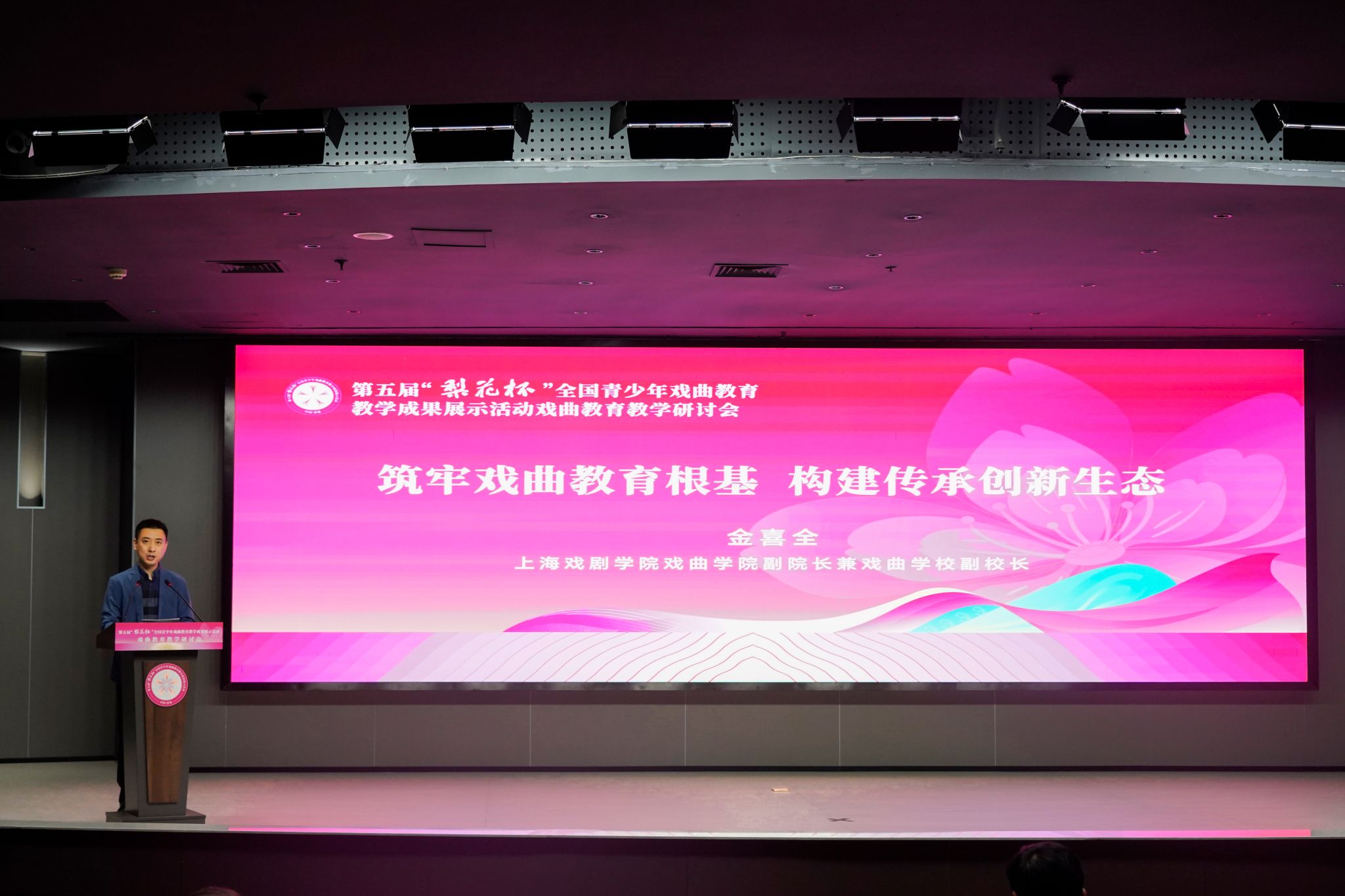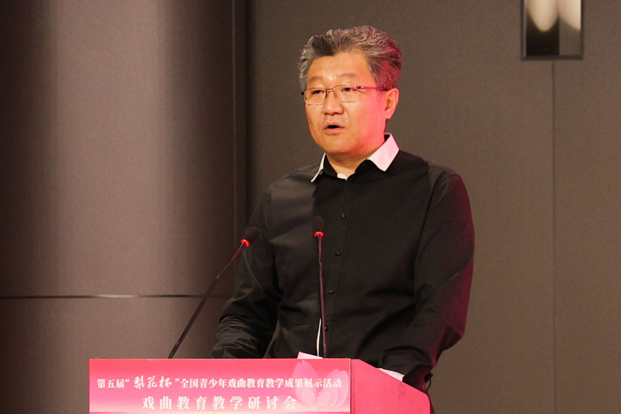 徐青峰代表学校向参会嘉宾表示热烈欢迎和诚挚感谢。他指出,“梨花杯”是全国青少年戏曲教育成果展示的最佳舞台,承载着检阅后备力量、交流育人经验、引领教学创新的重要使命。本次戏曲教育教学研讨会的主题是“薪火相传·梨园新声:新时代戏曲教育教学质量提升路径探索”,希望与会专家分享真知灼见,碰撞智慧火花,以更加开放的视野、更加创新的思维、更加务实的行动,共同谱写新时代戏曲教育事业繁荣发展的崭新篇章。