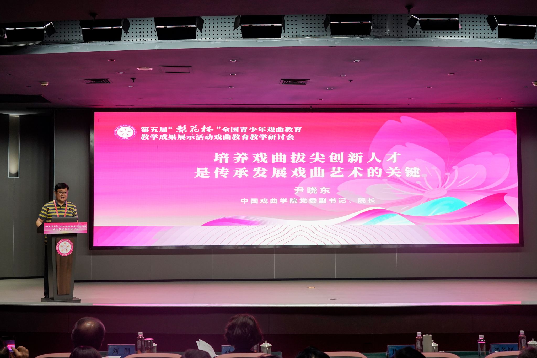6月7日,第五届“梨花杯”全国青少年戏曲教育教学成果展示活动戏曲教育教学研讨会在我校召开。文化和旅游部科技教育司副司长刘冬妍、巴桑卓玛,中国戏曲学院党委副书记、院长尹晓东,山东省文化和旅游厅党组成员、副厅长孙蕾,山东艺术学院院长徐青峰、副院长彭丽,国家艺术基金管理中心副主任杨舟贤,北京京剧院原院长、全国政协京昆室副主任刘侗,中国戏剧家协会原分党组成员、秘书长崔伟,上海戏剧学院戏曲学院副院长兼戏曲学校副校长金喜全,浙江艺术职业学院党委书记薛亮出席研讨会。会议开幕及主题发言环节由彭丽主持。