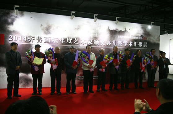 3月29日上午,“筋骨·道德·温度——2014齐鲁画坛年度艺术家颁奖典礼暨学术汇报展”在西城时光国际艺术馆隆重举办。山东省委宣传部副部长王红勇,山东省文联党组书记于钦彦等领导和嘉宾出席颁奖典礼并为艺术家颁奖,山艺教授张志民、沈光伟、岳海波、梁文博等10位艺术家获“年度艺术家奖”,山艺校友韦辛夷、张春艳分获“年度艺术家奖”和“年度新人奖”。
