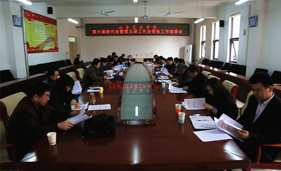 会议首先由工会负责人传达了《中共山东艺术学院委员会关于召开第六届教职工代表大会暨第五届工会会员代表大会第一次会议的通知》,介绍了“双代会”工作小组分组情况、时间安排、会议议程和代表团组成情况、选举程序等。党办院办负责人传达了《关于征集教代会六届一次会议提案的通知》,介绍了会议流程和安排。