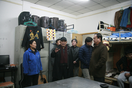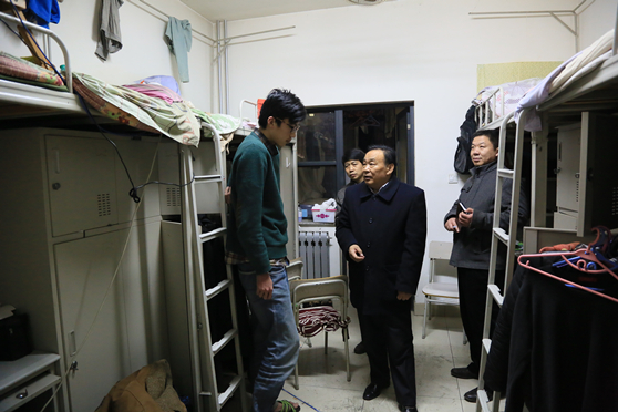 1月6日,校领导李宗伟、张志民、王力克、兰绍彤与二级学院党政负责人、有关部门负责人,分两组对文东、长清两个校区学生公寓进行了安全检查。检查期间,学校领导仔细查看了学生公寓电路是否存在安全隐患,详细了解了公寓安全管理规章,认真询问了学生在校生活、学习等情况,并耐心给学生讲解了使用违章电器的危害,提醒同学们在日常生活中要科学用电,做到人走电断,学会保护自己,让老师和家长放心,让学校和社会放心。