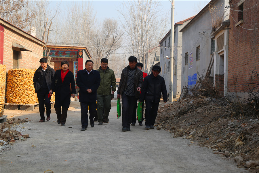 李宗伟书记一行在各村党支部书记的引领下,走访慰问了部分五保户和低保户,为他们带去了慰问金和粮油物品,并向他们表示新年的问候。期间,还先后实地察看了金店村文化大院活动室及广场护栏建设、致富项目、生活用水机井建设,姬庄村山艺路两侧绿化、村内道路硬化、排水设施建设及生活用水管线工程,良东村覆盖全村的新修砂石路、大蒜种植项目、文化大院活动室及广场整修扩建等情况。