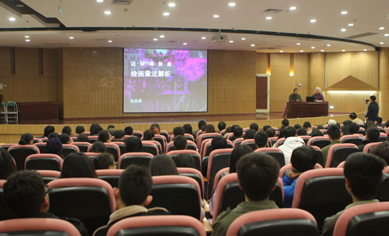 讲座中,张世彦教授在“边缘的圈围”、“位置的确定”、“空间的营造”、“态势的分布”、“美感的发生”五个层面上,对绘画章法的样式、方法、技巧做了明晰而辩证的普世性论述。张世彦教授通过所收集的古今中外的世界名画做讲解的范例,从中西方两个方向找到各自的差异和优点;并分析了绘画从古至今的发展方向,以及所保留的古今相通的各种好的技巧和方法。本次讲座还加入了张世彦教授对画面全新的理解,例如绘画密码的讲解,使我们更加深层次的理解绘画的内容。每节课结束后,张世彦教授都会对同学们的问题逐一进行了详细的解答,并且引用自身经历和自己作画时的感受给同学们以启示,使同学们受益匪浅。张世彦教授的讲座深入浅出、妙语连珠,不时引起大家的共鸣并报以热烈的掌声。张世彦教授的章法绝不是简单的构图技巧罗列,而是进行了深层次的发掘,不仅从美学角度解析了绘画章法,更加入了哲学角度,形成新形势,更深层的绘画理论体系。