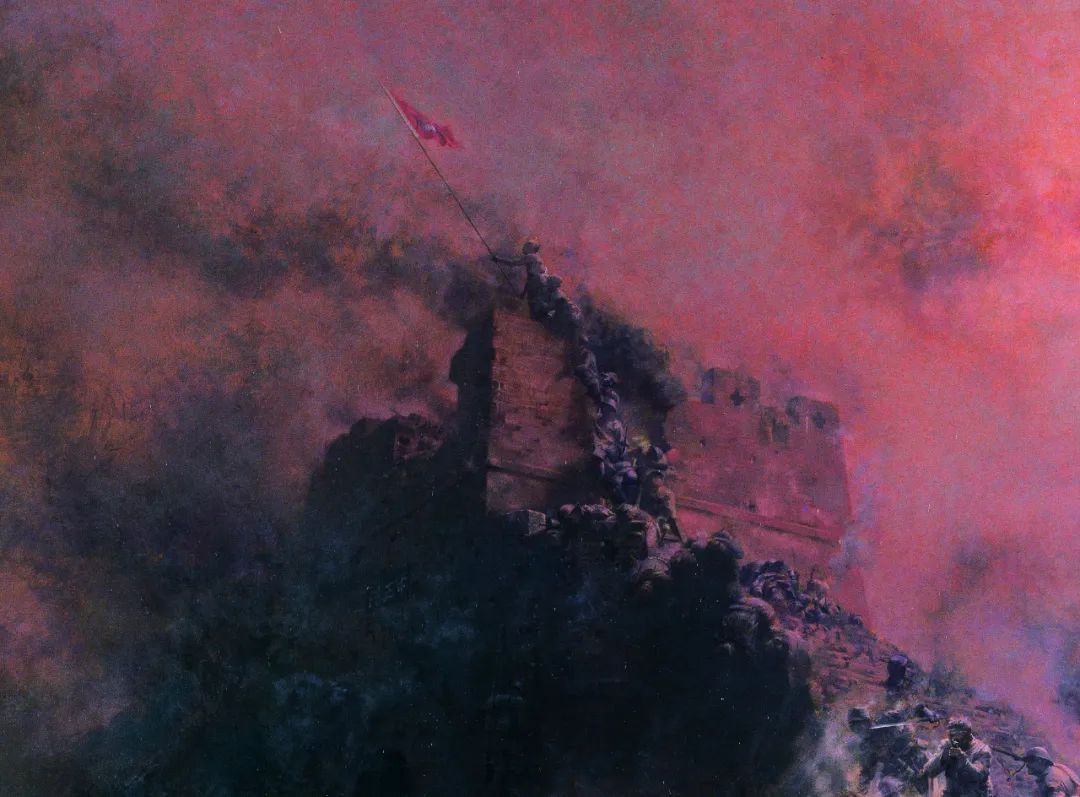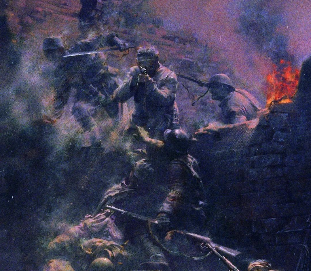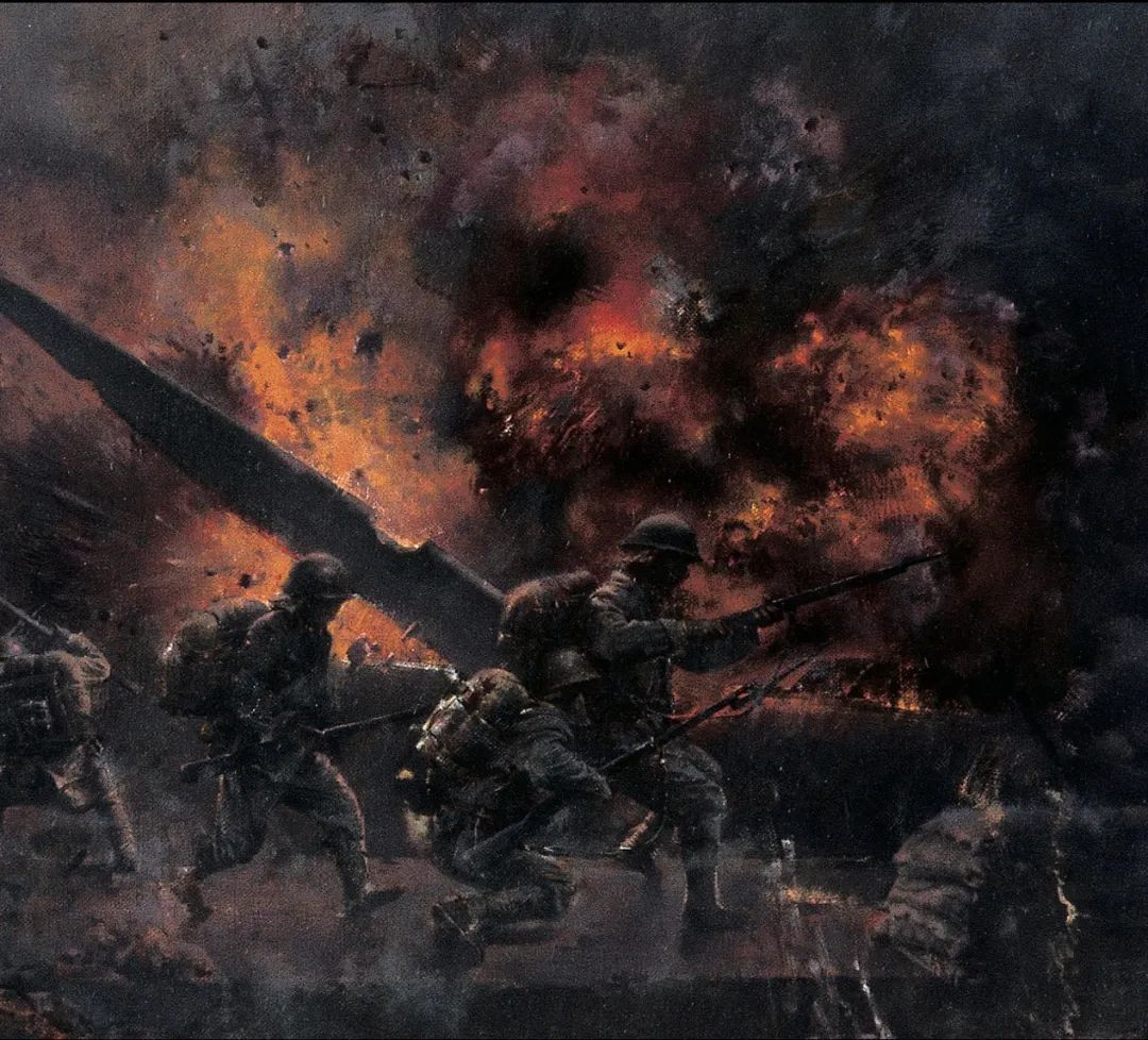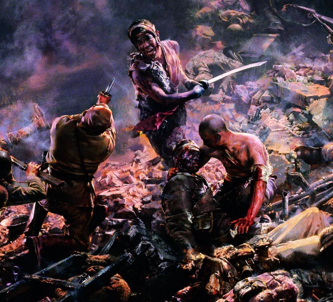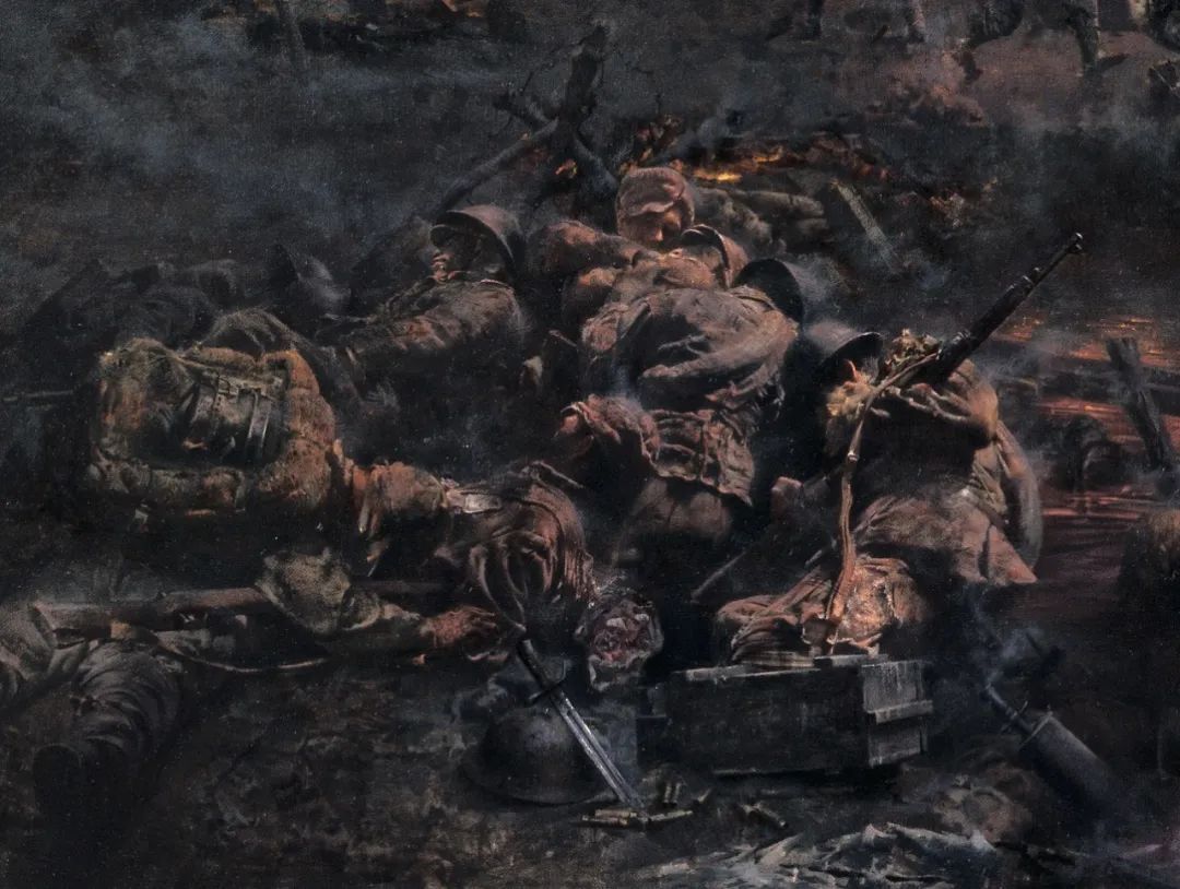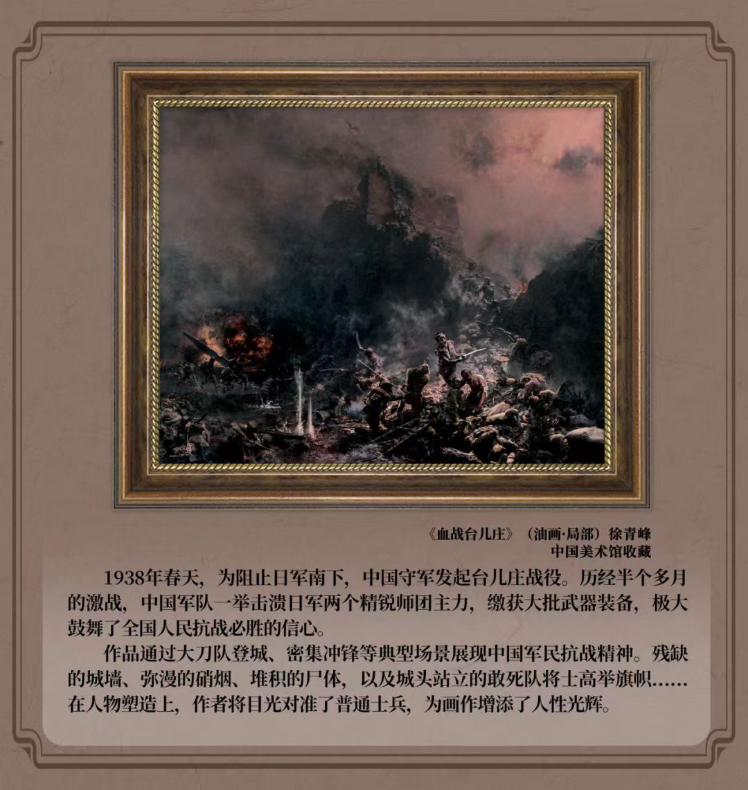 我们通过重温这幅画来回望那段屈辱艰苦的历史,缅怀那些以血肉之躯筑起钢铁长城的英雄,让永恒的抗战精神永远激励着我们前进!