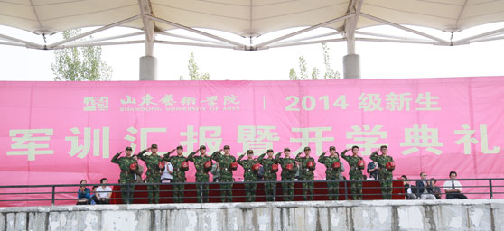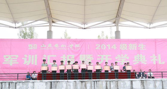 9月26日上午,我校2014级新生军训汇报暨开学典礼在长清校区体育场举行。校党委书记李宗伟,院长张志民,党委副书记王力克,副院长刘大力、刘晓静、高启光,济南军区72556部队副团长李道武,各部门负责人、各二级学院院长、党总支书记、副书记和全体辅导员以及全体本专科、研究生新生参加了开学典礼。开学典礼由副院长刘大力主持。