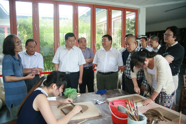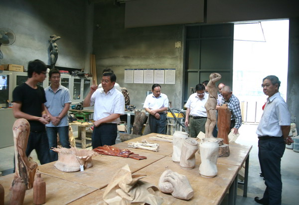 座谈会后,学校领导全程陪同王厅长一行参观考察了雕塑大棚、一号公寓宿舍活动室的学生创业团队以及位于园博园的毓窑等大学生创业孵化基地。