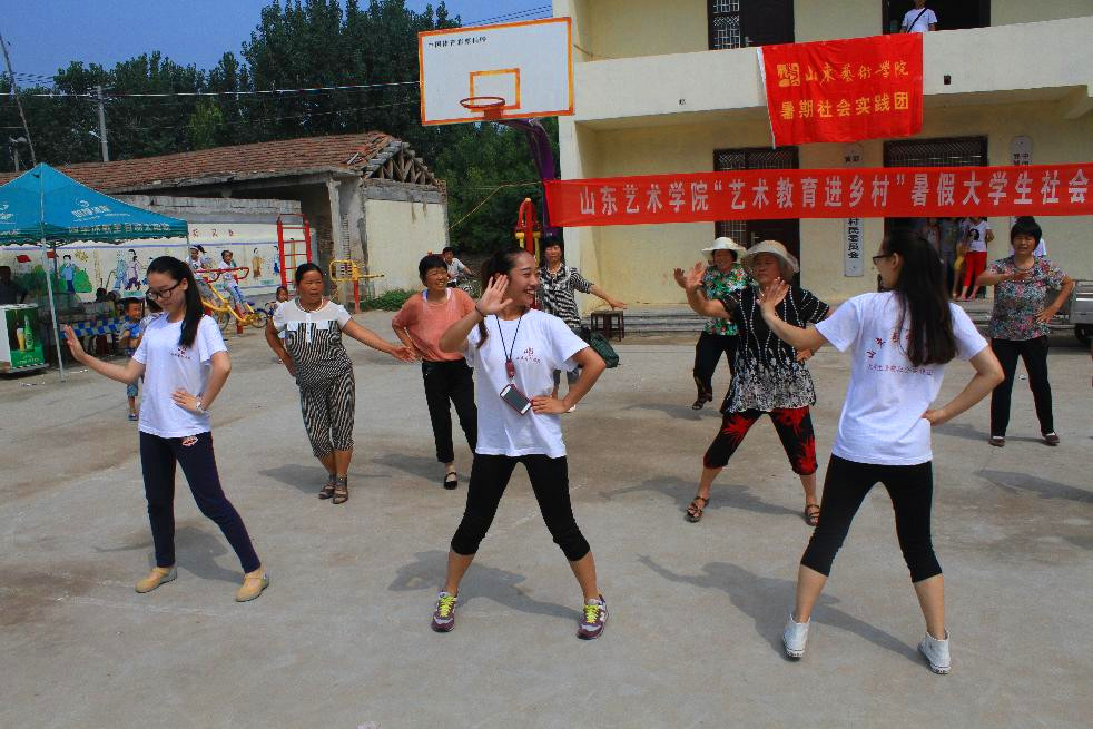 对“第一书记”帮包村实施文化帮扶、不断提升乡村文明素养,是我校发挥艺术资源优势、落实服务社会行动计划的具体内容,也是第三批“第一书记”工作的着力点。在团委两位指导老师的组织带领下,三支“义务支教、爱心捐赠、教练广场舞、文化宣传”社会实践服务团不顾路途颠簸,冒着烈日和高温分赴驻村“第一书记”所在的良东村、姬庄村、金店村,针对农村留守儿童、留守妇女、留守老人开展了义务支教、爱心捐赠、教练广场舞、文化宣传等社会实践活动。