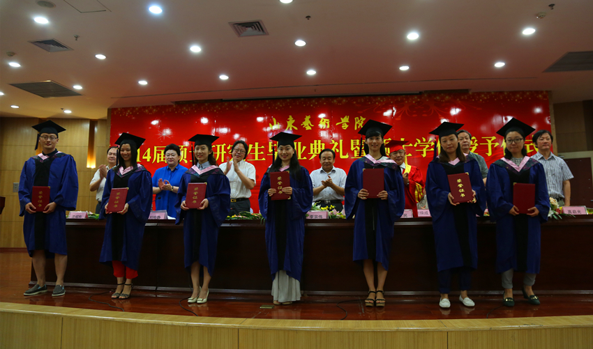 王力克副书记在典礼上宣读了《山东艺术学院关于准予2014届硕士研究生毕业的决定》和《山东艺术学院关于授予2014届硕士研究生硕士学位的决定》,刘大力副院长宣读了《山东艺术学院关于表彰“于希宁奖学金”获得者的决定》。校领导为“于希宁奖学金”获得者郗悦、张鹏、于潇、王丽南、朱娟娟、王玉玲、于志云七位同学颁发了表彰证书。