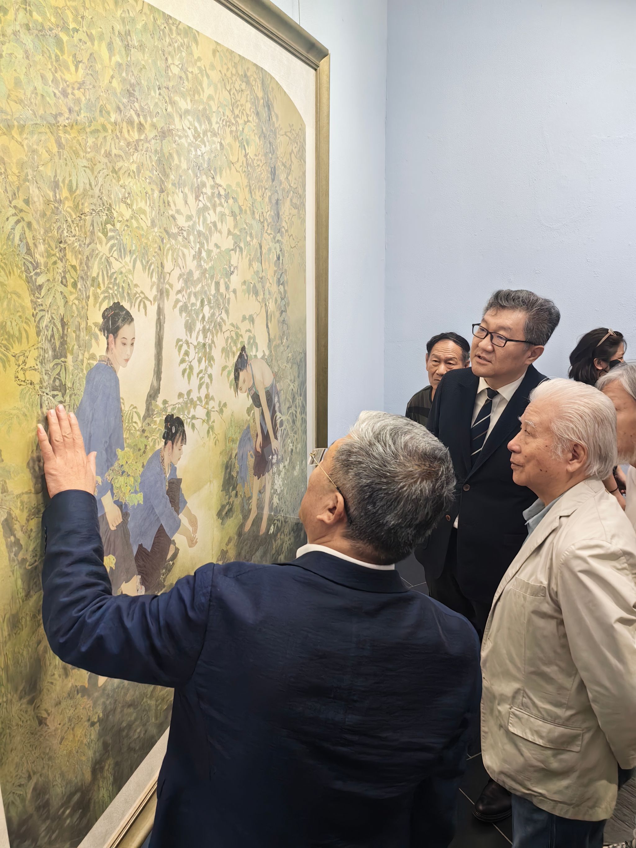 他在致辞中表示,于文江先生的作品,既坚守中国画的精神本源,又融入当代审美意识;既延续山东人质朴厚重的气质,又贯通国际化的艺术语言。这种“立足本土、面向世界”的创作理念,为山东美术的跨越发展树立了重要标杆。于文江先生的艺术实践告诉我们,真正的艺术高峰需要具备三个特质,一是对传统文化的深刻理解与创新转化,二是对时代精神的敏锐把握与艺术表达,三是对个人风格的持续锤炼与突破。为此,我们将大力推进“艺术回乡”工程,邀请更多像于文江先生这样从山东走出去的优秀艺术家回乡交流,促进地域文化互动,激发本土创作活力。同时,我们也将加大青年艺术人才培养,拓宽学习平台,夯实人才梯队,全力推动山东美术整体水平的提升。
