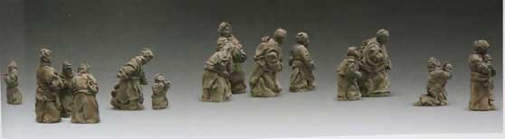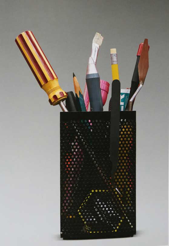 李秋地的雕塑作品《我的笔筒》是这次展览中唯一的一件当代观念性作品。在体现主旋律的大展中,观念性作品应是艺术多元化的体现。《我的笔筒》以笔筒中的物件,解释和还原物件的历史和来历,成为有身份证的物件,这使人联想物件与主人的亲密关系,是人的经历和情感的依偎。这样,雕塑由空间引向时间的追忆,应该是具有时空观念的雕塑。白彧的雕塑《高原印象》反映藏族的风土人情,是件有浓厚乡土气息的作品。