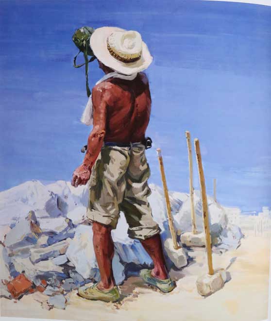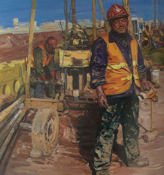 反映农民工题材的有两件作品,宋海永的《斜阳》和张伟的《石匠》,都是紧扣时代主旋律的作品。