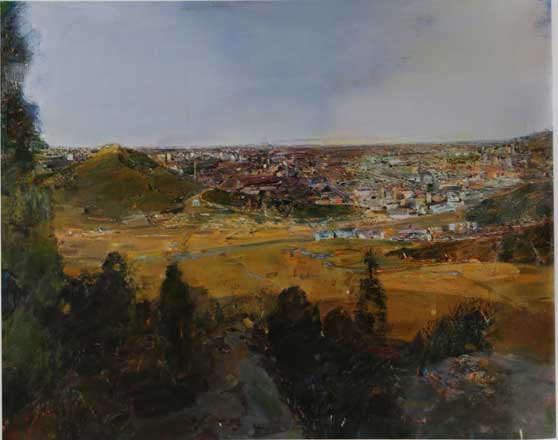 管朴学的油画作品《朝阳中的的圣城》以表现写意的手法描写孔庙的神圣境界,孔庙虽然已过几百年的岁月,但仍然以金碧辉煌的形象象征着儒家事业的存在和发展。庙宇和远处的金黄色带,使画面在沉寂中靓丽起来,作品在运用表现和象征的图式方面是成功的。