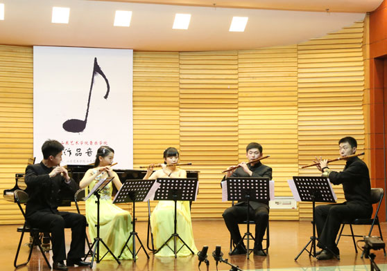 该场音乐会还出现了一些富有特色的艺术歌曲、钢琴曲以及器乐独奏曲。宫富艺教授的女高音独唱《秋光》以感人的旋律和质朴的伴奏,表现了对亲人、生命的哲理性思索。姚怡副教授的女高音独唱《想你》旋律优美,运用大小调交替的手法表现了细腻的内心情感。孙倩副教授的笛子五重奏《乡念》充分发挥了笛子的演奏技巧和重奏特性,在可听性和艺术性上实现了统一。姚怡副教授的三重奏《荷》以长笛、小提琴和钢琴的形式,表现了夏日荷花的多姿,音乐流畅,结构严整。孙倩副教授的钢琴独奏《碰撞》运用音级集合和序列音乐相结合的技术,表现了东西方文化的对话和碰撞。朱长磊副教授的钢琴独奏《海啸》充分发挥了钢琴的演奏特性,以现代的音乐语言表现了对气候变暖的忧思。