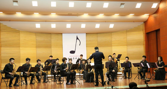 《春之舞》主题鲜明,运用丰富的转调手法,营造了春天来临、人们内心充满喜悦之情的氛围;《鲁腔》则选用山东民歌元素,段落分明而结构紧凑,音乐层层递进,富有新意;《柳风》选用了山东柳子戏的音调,加入了较多的现代元素如新的演奏技巧等,在民族音乐室内乐化方面进行了成功的尝试。除此之外,本次音乐会还有专门为我省首支萨克斯乐团而创作的四部作品。其中,宫富艺教授的《踏青》采用了山东大鼓的素材,在乐曲结构、和声以及转调手法上较有特色;何清涛副教授的《道情》是为台湾桃园管乐艺术节而创作,在台湾首演,乐曲采用了陕北道情的旋律素材,以多种手法使如歌如泣的旋律获得了充分发展。刘晓鹏老师的《沂蒙山Jazz》尝试将爵士乐风格与山东民歌小调相结合,别有一番趣味。除此之外,由孙志鸿副教授创作的《前奏曲与赋格——秦韵》,是一部具有较高演奏难度的复调钢琴作品,该曲由我省第一位盲人青年钢琴演奏者王秋懿的精彩演绎下,使得作品的艺术性得到了较大的提升。