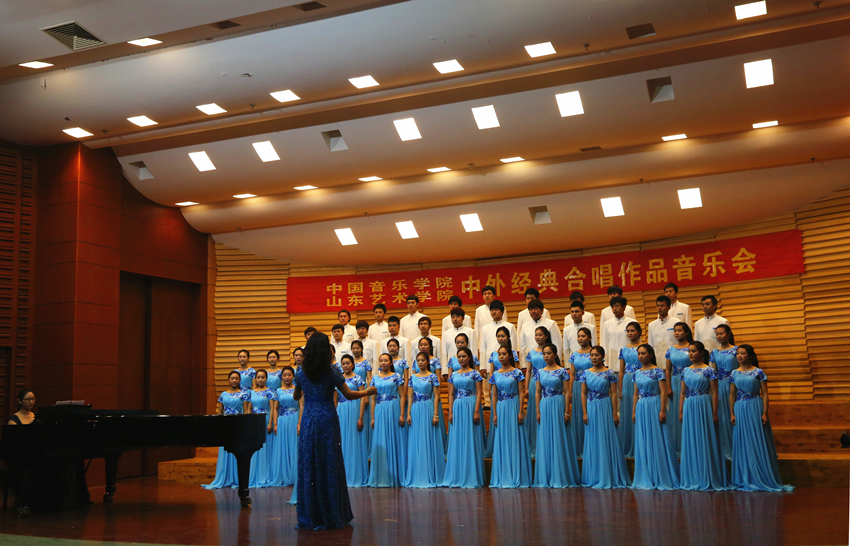 7日晚,中国音乐学院“音乐教育系学生合唱团”和山东艺术学院“音乐教育学院青年合唱团”在我校文东校区一楼剧场联合举办了“中国音乐学院•山东艺术学院中外经典合唱作品音乐会”。中国音乐学院党委书记闫拓时,山东艺术学院党委书记李宗伟、副院长刘晓静,山东省教育厅体卫艺处张德珠处长,中国音乐学院音乐教育系和我校音乐教育学院负责人及相关单位领导、师生共同观看了演出。