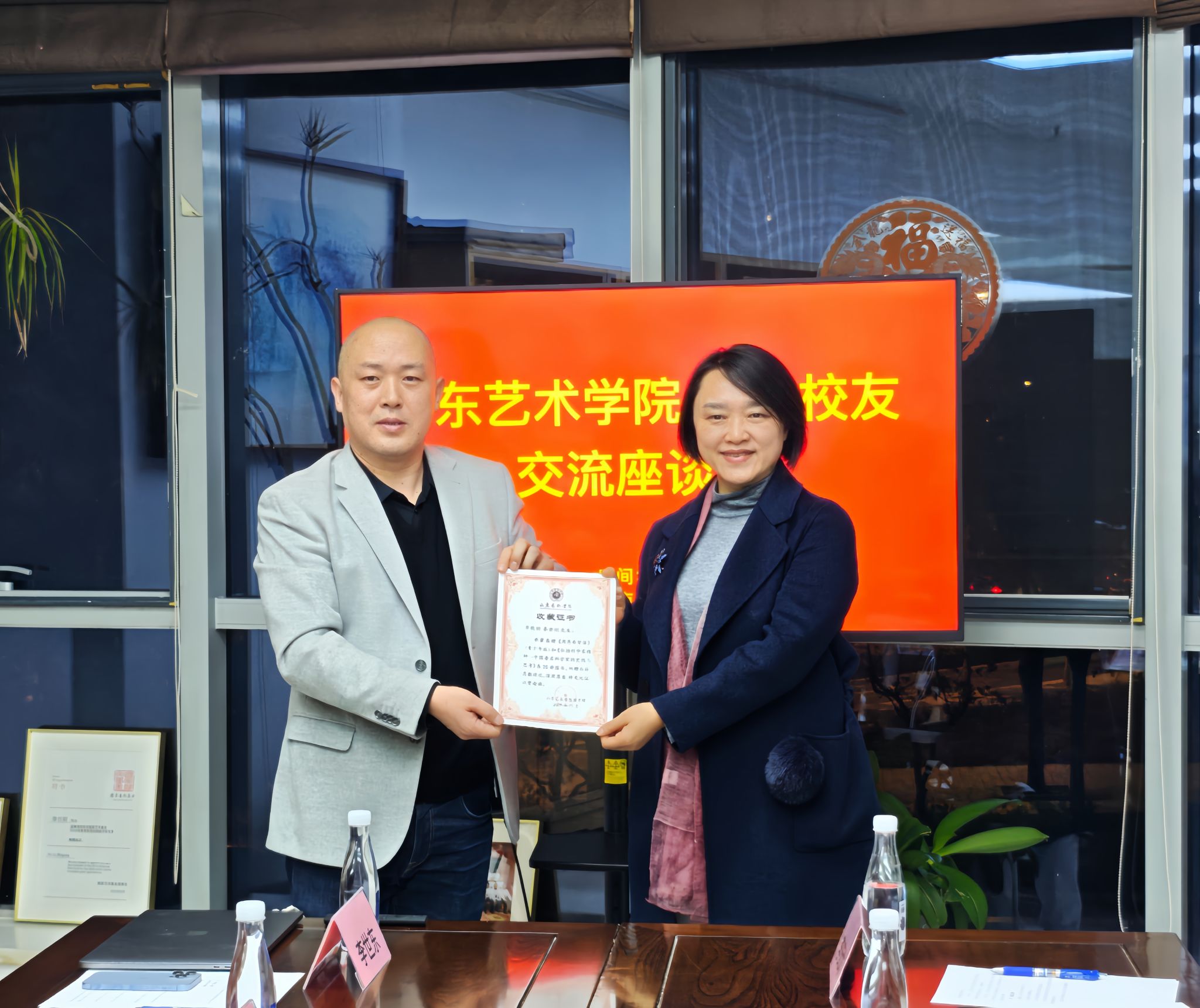 座谈期间,徐梅为校友逐一佩戴了校徽、校训等纪念章。1993级师范美术专业校友,央画创始人、中国美术家协会理事李世刚向学校捐赠图书,彭丽代表学校接受捐赠,为李世刚颁发捐赠证书并致谢词。