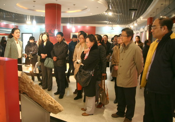 《非遗法》培训班学员在我校职业成教学院、艺术文化学院、图书馆有关负责人的陪同下,相继参观考察了梅园、文化遗产保护技术教学实验室、造型基础训练室、物质文化遗产鉴定评估教学实验室、非物质文化遗产专题课教学实验室、民间艺术传习所、文物保护技术研究室、物质文化遗产教学标本陈列室、艺术品镶装保护技术教学实验室、校史馆、汉画像石艺术馆、于希宁绘画艺术纪念馆、教师美术作品陈列馆、鲁锦艺术馆、山东民间剪纸艺术馆。