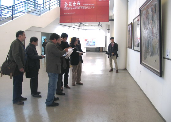 11月9日上午,齐鲁研究生学术论坛——艺术硕士专业学位论坛美术类、艺术设计类艺术硕士专业学位评奖,在我校长清校区美术馆举行。国务院学位办专业学位处处长唐继卫,山东省教育厅学位管理与研究生教育处处长周佳敏,美术类评委会主任、山东省美协副主席姜衍波等9位美术类评委,艺术设计类评委会主任、清华大学美术学院博导何洁等9位艺术设计类评委,我校研究生处、美术学院、设计学院负责人参加评奖活动并参观展览。