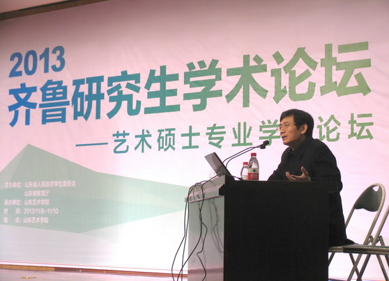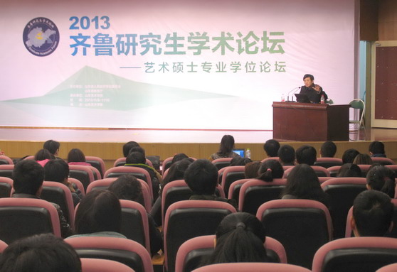 11月10日上午,在齐鲁研究生学术论坛——艺术硕士专业学位论坛在我校举办期间,国务院艺术学科评议组召集人、全国艺术专业学位研究生教育指导委员会美术与设计分委员会召集人、中国美术学院博导曹意强教授,应邀在我校长清校区图书馆报告厅作了题为《艺术硕士学位的性质和未来发展》的学术报告。我校院长张志民,山东省美协副主席姜衍波,论坛美术类、艺术设计类与会代表,美术学院有关负责人、师生近400人参加报告会。报告会由院长张志民主持。