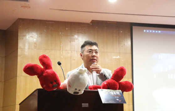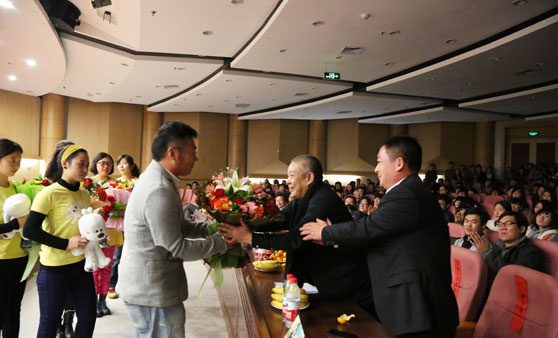 于胜军导演的授业恩师、我校院长张志民在试映会上致辞。张志民院长动情地讲到,于胜军作为知名校友,非常重感情地给老师们献了鲜花,这个让我相当的感动。当初,老师们和同学们一块交流,一块上课。今天,这些成功的学生回来,让我们想到我们还做得不错,也自信起来。他指出,校友回到母校和同学们交流,回报母校的教育之恩,这是我们民族的传统美德,因为,如果一个民族没有感恩的心,没有敬畏意识,就是对成功,对知识,对真理,失去敬畏;就是对母校,对父母,对社会,失去感恩,这个民族就是危险的。他强调,成功不一定必须去干什么,一个大学培养的学生,并不一定是培养一个类型的学生,我们培养的国画专业的学生也可能将来像于胜军这样去从事动画。他鼓励同学们道,学校给了你们知识,你们要学会用知识寻求真理,懂得知识,懂得真理,才能在社会上立足,但真正的成为大师,成为企业家,成为栋梁之才,要靠社会的再培养,靠发挥自己的智慧发掘去,希望同学们以我们的成功校友为榜样,为山东艺术学院争光。
