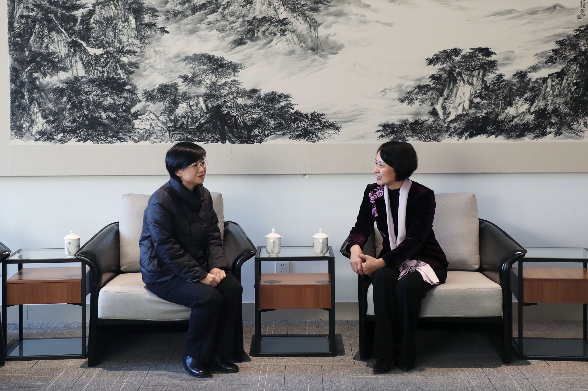 11月27日下午,平原县委常委、宣传部部长许茜茜一行来我校调研交流。党委书记徐梅会见了许茜茜一行。