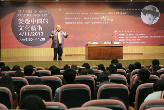 11月4日上午,台湾著名艺人凌峰先生受聘山东艺术学院客座教授暨学术报告会在长清校区图书馆报告厅举行。院长张志民,艺术实践与创作处、职业成教学院、国际交流学院和山东广播电视台美术馆负责同志及400余名师生参加了报告会。报告会由职业成教学院负责人主持。