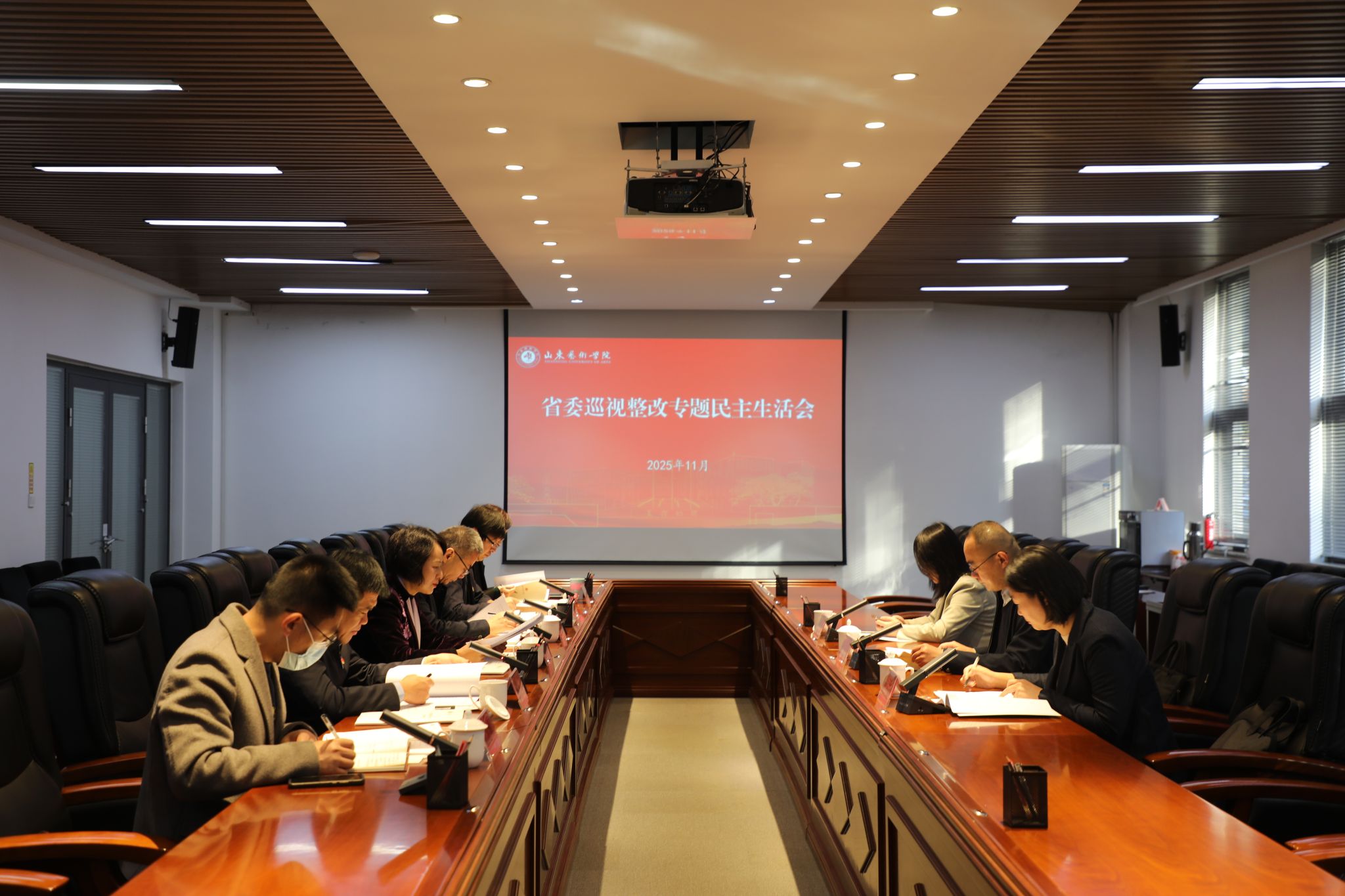 根据省委巡视工作要求,11月27日,学校在长清校区办公楼第一会议室召开党委领导班子巡视整改专题民主生活会。省委巡视工作办公室、省纪委监委、省委组织部有关同志到会指导。学校党委书记徐梅主持会议并作总结讲话,学校党委班子成员参加会议。